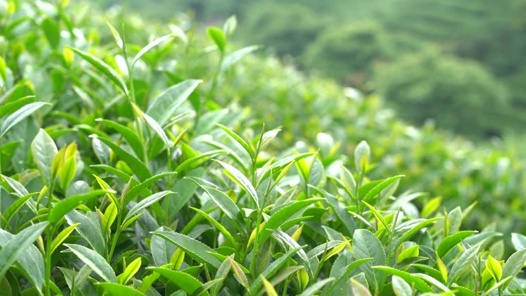 Tea leaves grow in abundance in spring