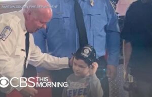 At the ceremony, surrounded by firefighters in uniform, Noah stood proudly in a tiny fire helmet, unaware of how many people across the country now knew his name.