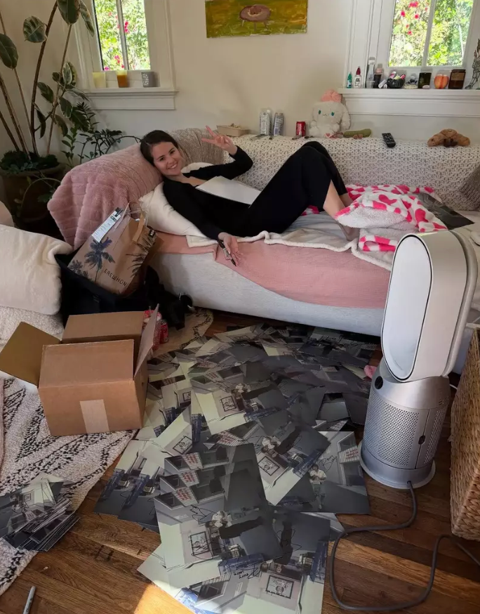 But it was one seemingly innocuous photo — showing Gomez signing autographs while seated on her couch — that really caught fans’ attention.