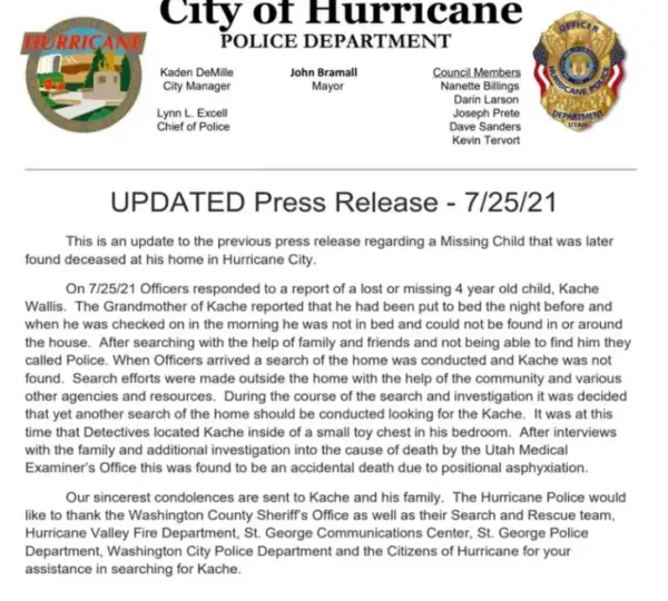 The loss of 4-year-old Kache Wallis remains one of the most heartbreaking moments in Hurricane, Utah’s recent history.