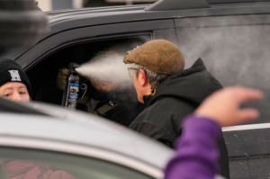 Moments earlier, federal agents had deployed pepper spray against protesters who confronted them, burning eyes and throats in the freezing air. The smell still lingered when a man was led out of the house in handcuffs.