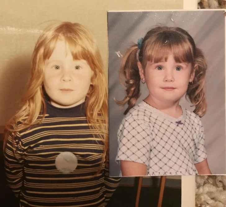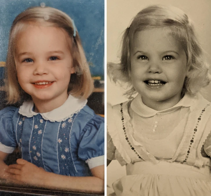 2. “My mom (left) age 4 in 1971. Me (right) age 4 in 2001. I see why people say we look alike.”