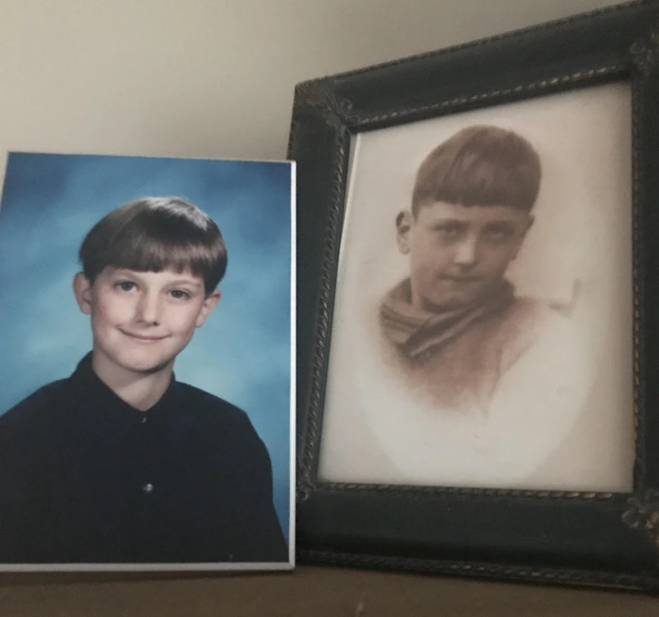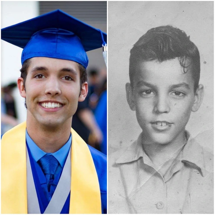 We all have about 22,000 genes and sometimes we share enough genes with our familyto be an almost identical copy of them. Although there may be 50 years between the 2 photos, their faces look the same thanks to the magic of these genes. There are some people who are carbon copies of their relatives, confirmed by their photos that simply blow us away.