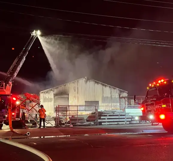 By 1:30 a.m., the building was fully engulfed. Flames poured out of the roof, swallowing metal beams and collapsing entire sections of walls. Large chunks of the structure fell inward, sending showers of sparks flying in every direction.