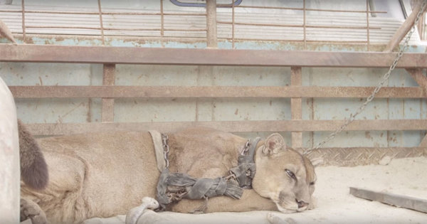 A mountain lion named Mufasa who ended up at a circus in Peru went through hell after he was forced to spend his days chained up in the back of a pick up truck for 20 years.